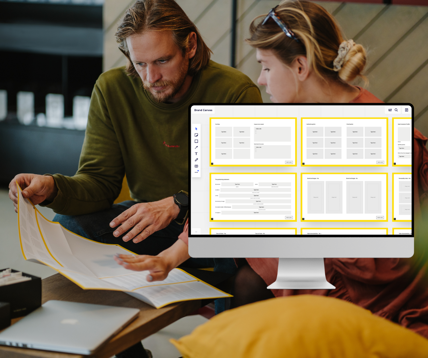 Brand Canvas provides the structure and ideation cards to hone your brand’s vision, consolidate and crystallize its core, and gain the clarity needed to take your brand to the next level. This light version is perfect for use with the digital Bloomerangas Tools. It includes a Miro template and an A2 printable. It does not contain the ideation cards.